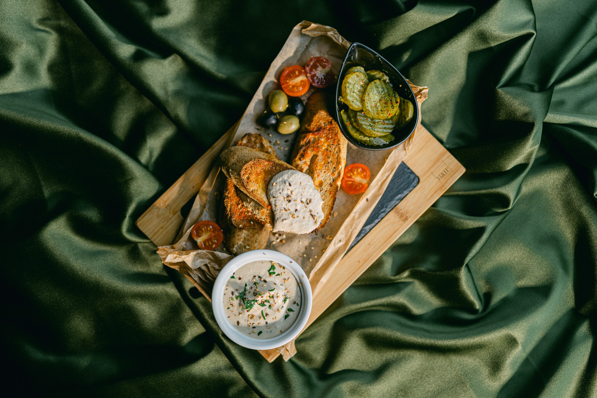 Pate od tune 560.00din. Brusket, domaća pašteta od tune, masline, cherry paradajz, slatko-kiseli krastavci, susam