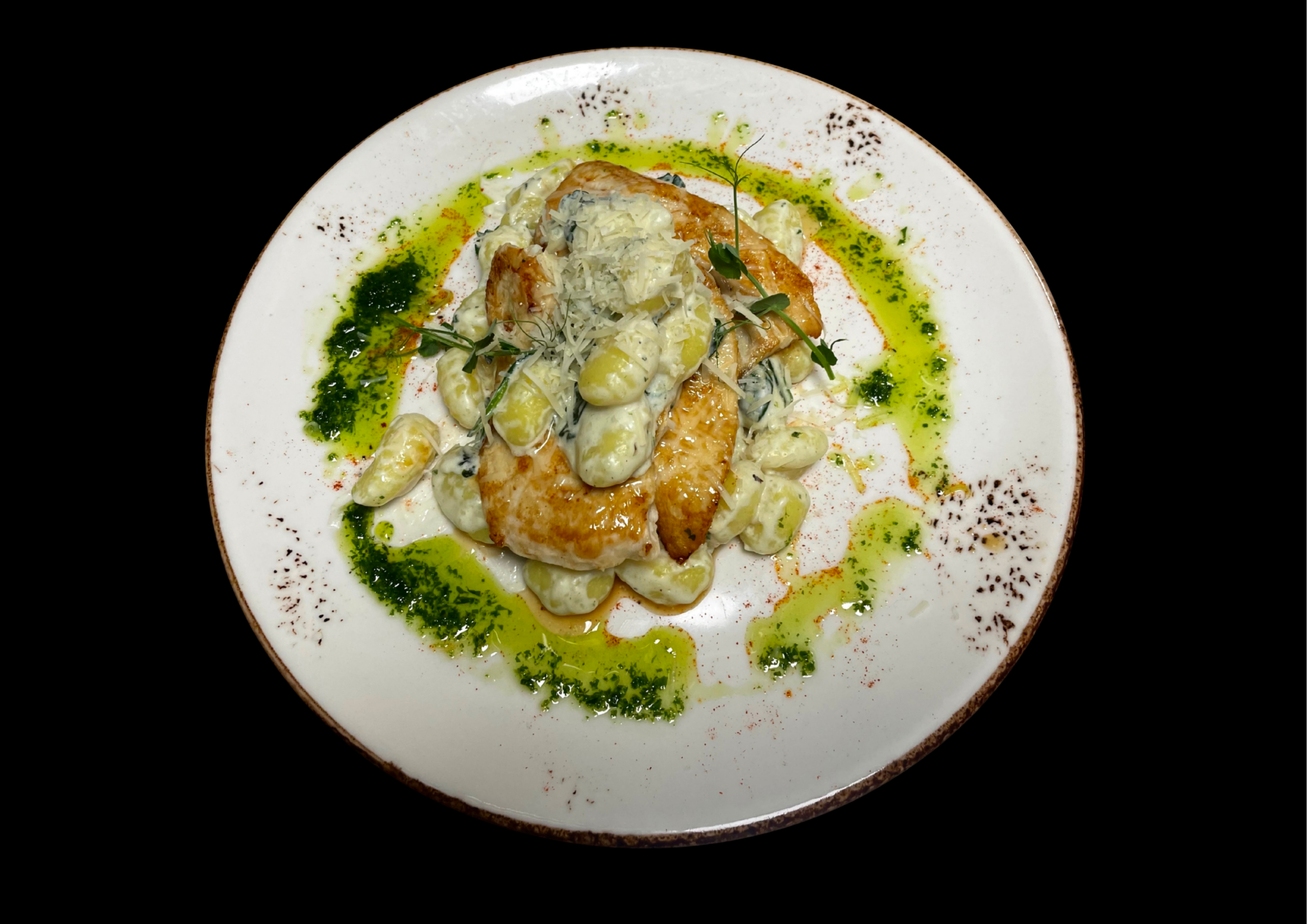 Pileći file (250g), njoke, baby spanać, parmezan
